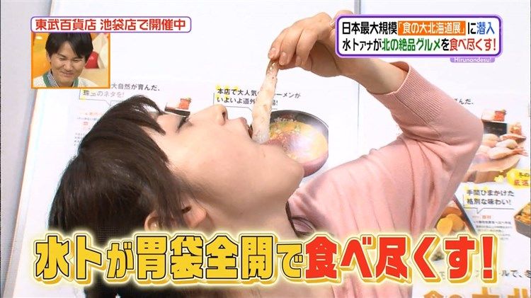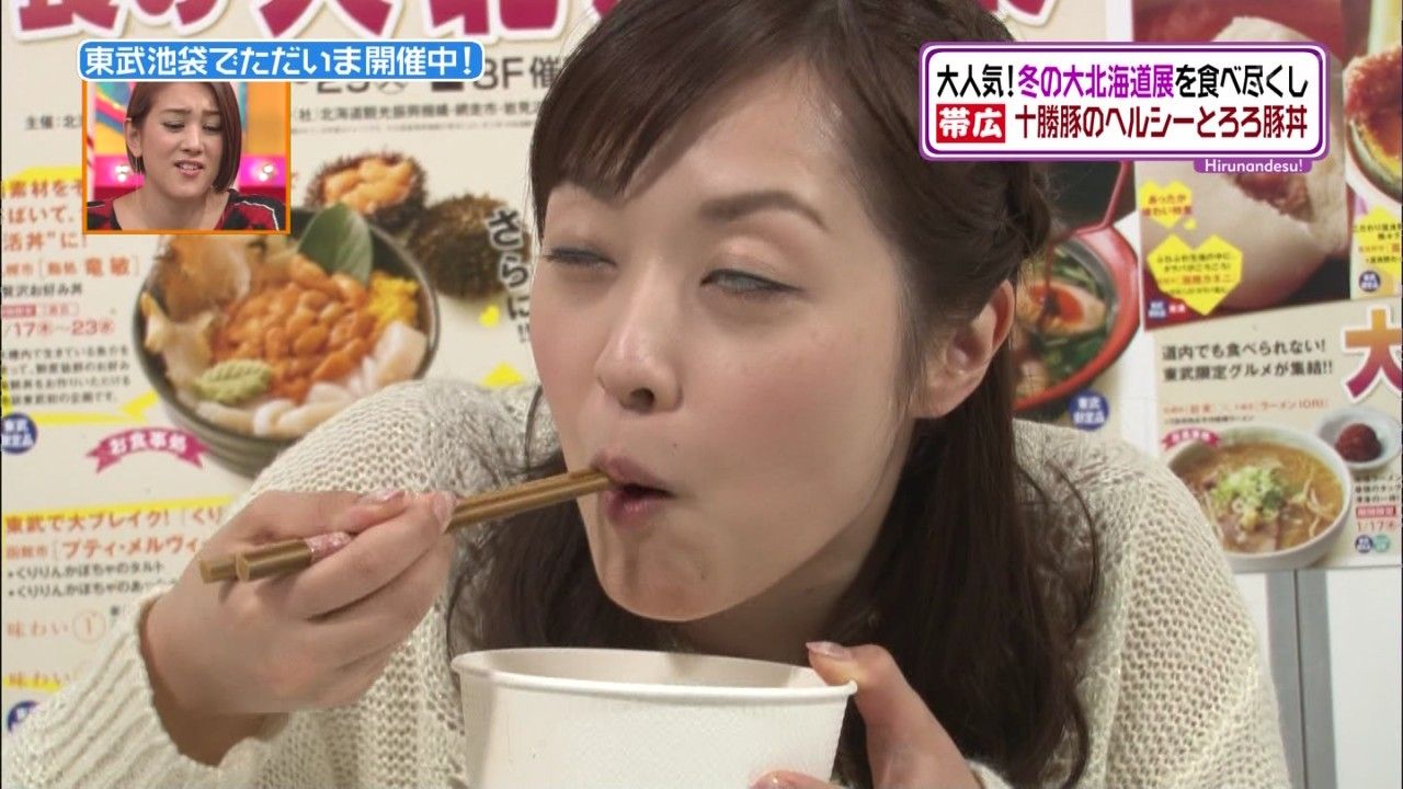 水卜麻美アナ(30)ヒルナンデス卒業前に豪快疑似フェラ食レポww