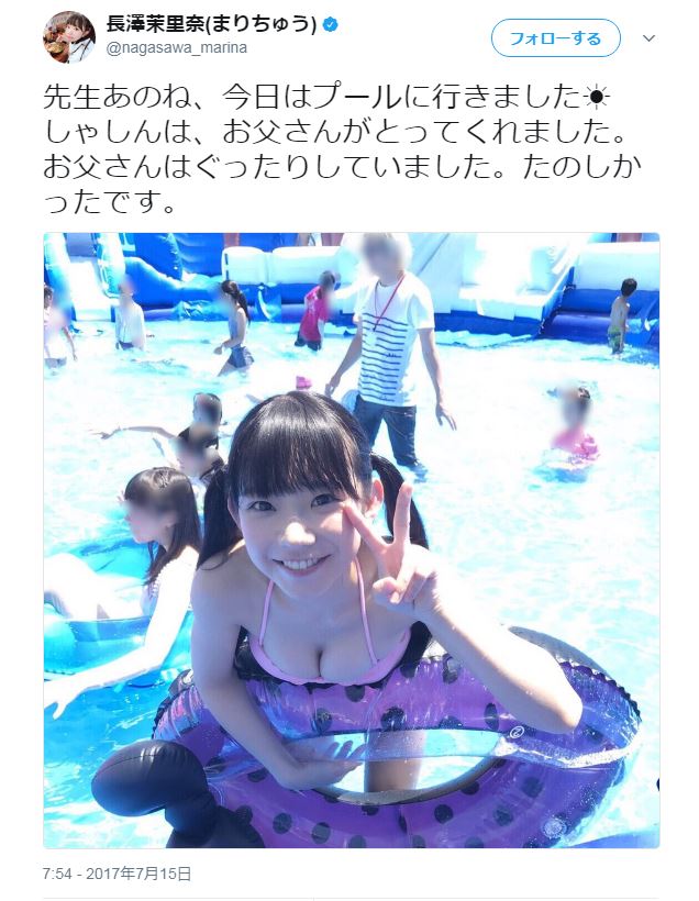 長澤茉里奈(21)合法ロリがパパとプールで水着撮影ww
