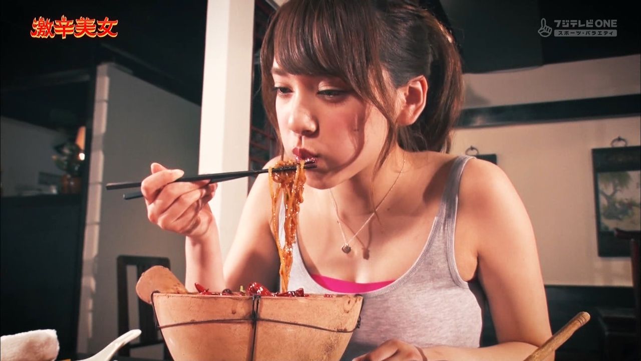 都丸紗也華(20)食欲も性欲も旺盛そうで胸チラ食レポがエロいww