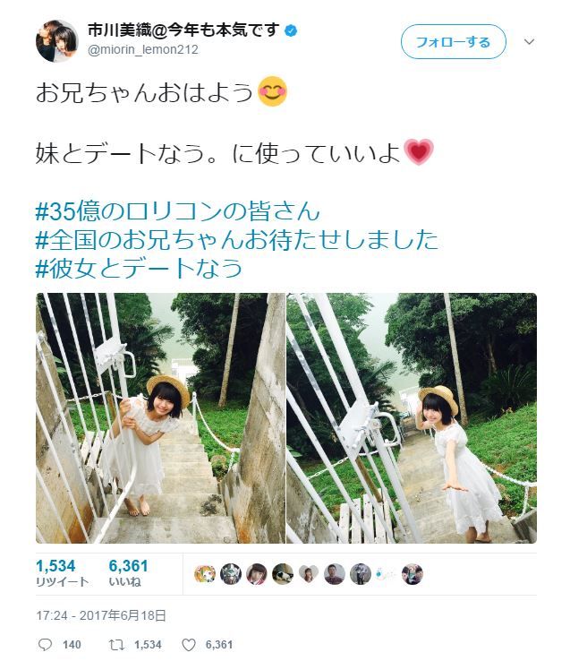 NMB48市川美織(23)ロリ受け抜群美少女の「妹とデートなう」が話題にww