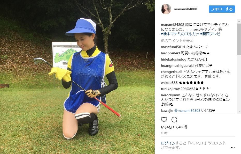 橋本マナミ(32)キャディ姿の生足太ももに着衣巨乳がぐうシコww